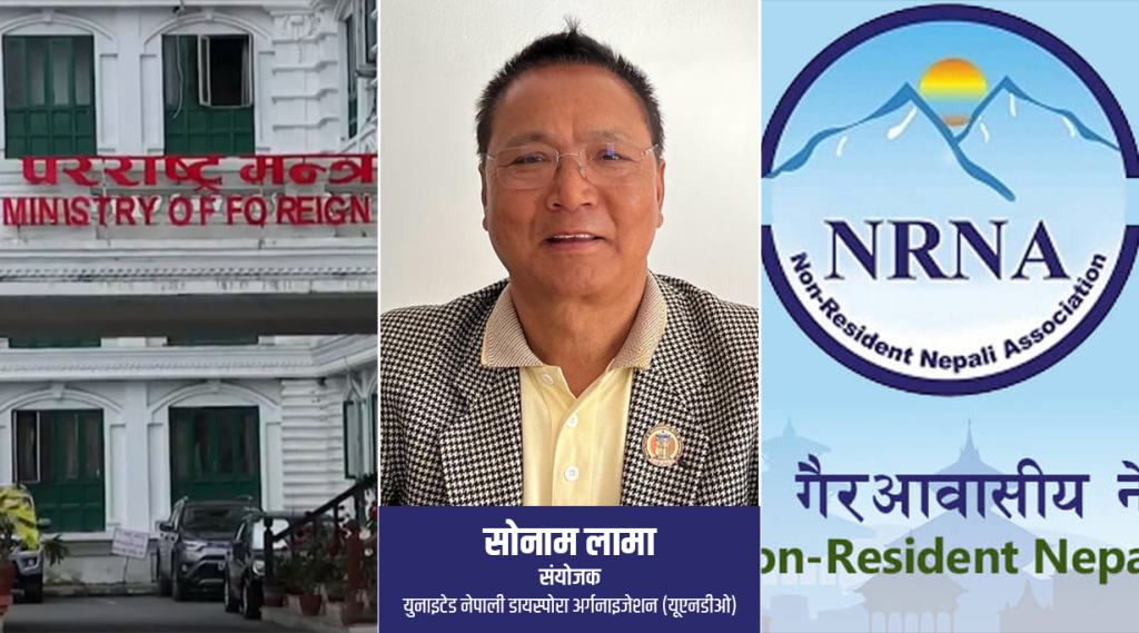 काठमाडौं । ‘युनाइटेड नेपाली डायस्पोरा संगठन’ नामक गैरआवासीय नेपाली संघ (एनआरएनए) को समानान्तर संस्था दर्ता भएको छ । परराष्ट्र मन्त्रालयले बुधबार ‘युनाइटेड नेपाली डायस्पोरा संगठन’ (यूएनडीओ) दर्ता गरेर सम्बन्धितलाई प्रमाणपत्र प्रदान गर्दै संगठनलाई आधीकारिक्ता दिएको छ ।